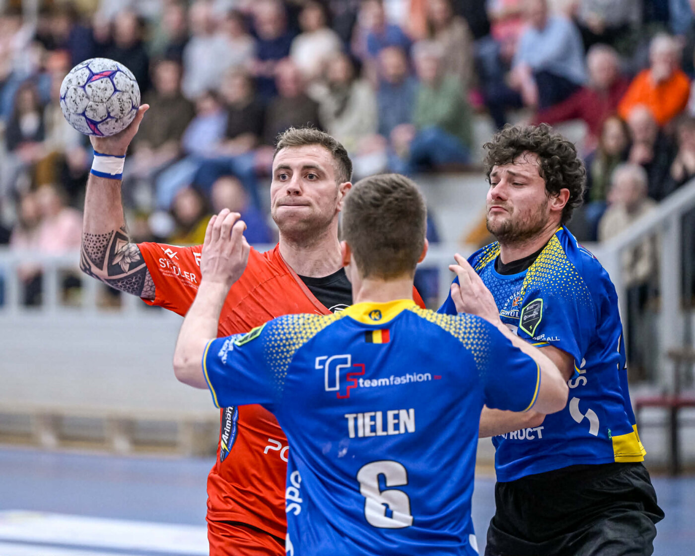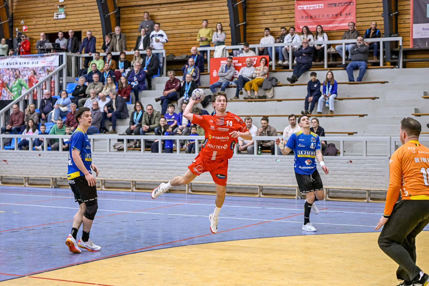Julian Kirschbaum beendete die Torflaute zum 4:7, doch nach nur 13 Minuten lag Eupen bereits 4:10 hinten. Die Abwehr stand zu selten kompakt, der Gegner kam zu leicht an den Sechsmeterraum und damit zu einfachen Würfen. In der 16. Minute stellte Trainer David L’Hoest erstmals auf den klassischen 6‑gegen‑6‑Angriff um (5:11). Das langsame Angriffsspiel erinnerte phasenweise an Handball aus den 90er Jahren. Das klare 6:13 zeigte die Kräfteverhältnisse deutlich.
